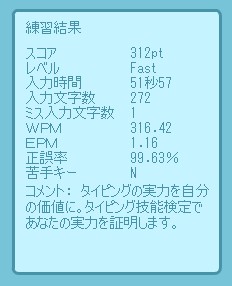 タイピング診断の結果が上記の通りだ!